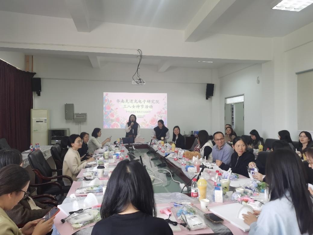 为庆祝“三八”国际劳动妇女节,丰富女教职工的精神文化生活,3月6日下午,华南先进光电子研究院在理5栋606会议室精心组织了一场别开生面的“半壁花瓶石膏法式插花DIY”主题活动。活动以艺术手作为载体,传递节日祝福,营造了温馨而富有创造力的节日氛围。研究院党委书记沈强旺代表学院致辞,向全体女教职工致以诚挚的节日问候,感谢大家在教学、科研和管理服务等岗位上的辛勤付出与卓越贡献。他表示,女教职工是学院发展不可或缺的重要力量,希望大家在忙碌的工作之余,也能享受艺术带来的宁静与美好。