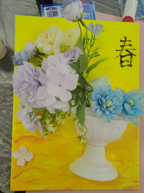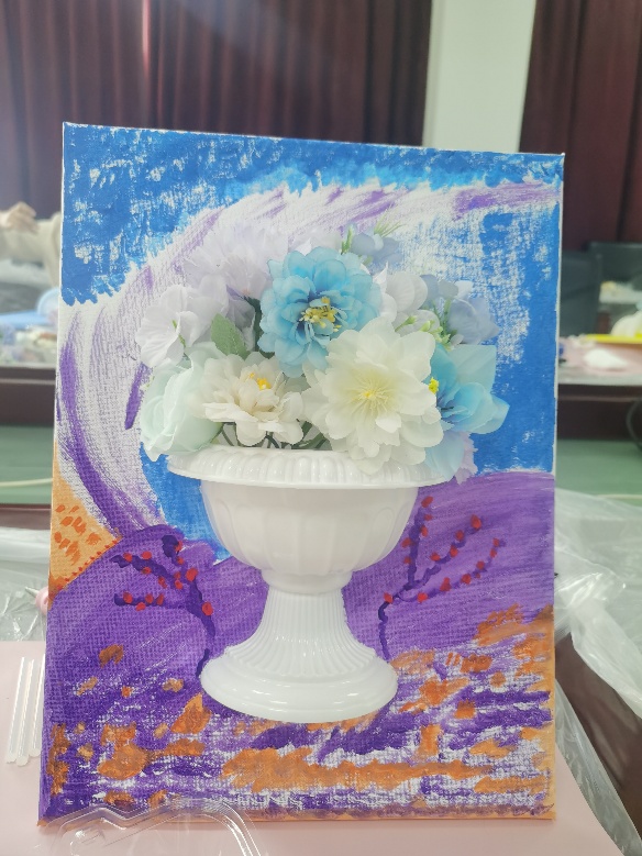 研究院老师们进行“半壁花瓶石膏法式插花DIY”创作